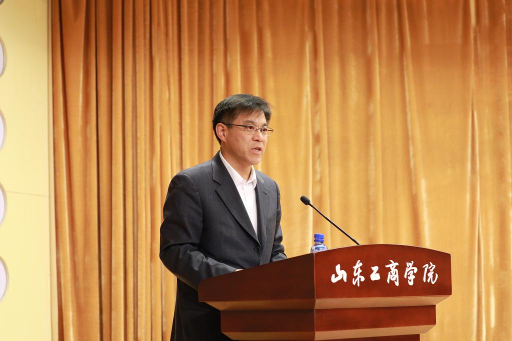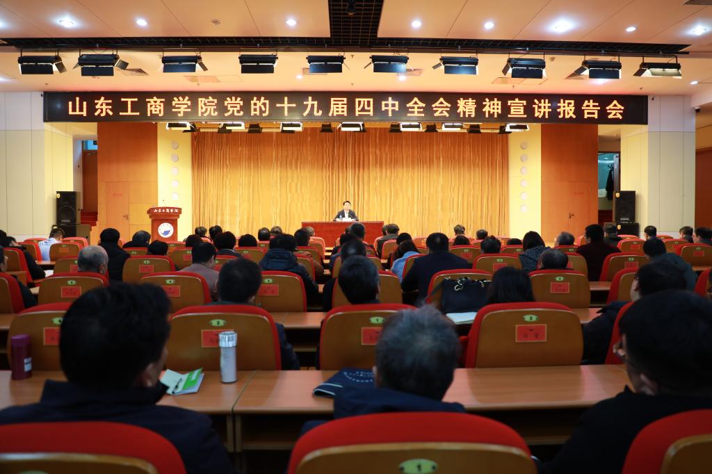 11月28日上午,党的十九届四中全会精神宣讲报告会在学术会堂举行。山东省属高校学习贯彻党的十九届四中全会精神宣讲团成员、学校党委书记白光昭作宣讲报告。院长杨同毅主持报告会。