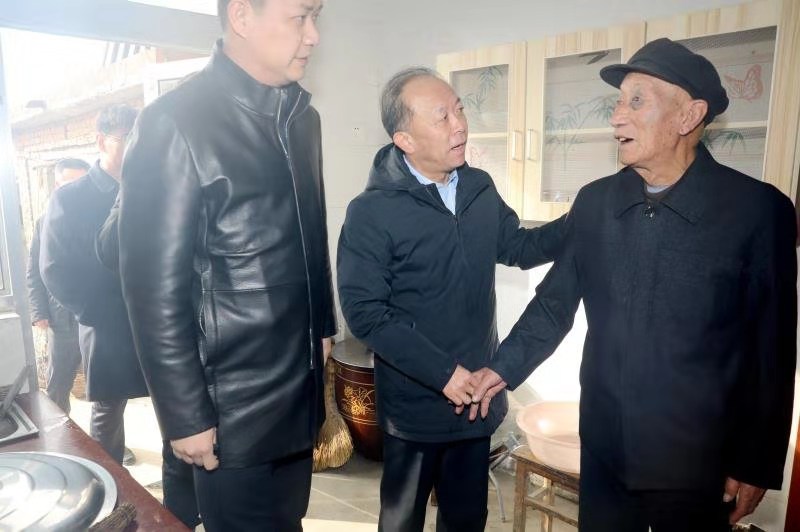郭金创代表学校党委给老党员和困难群众送去了食用油、大米等慰问品,并致以节日的问候。郭金创每到一户人家,都详细了解他们的生活情况。在因病致贫的困难群众家里,他鼓励他们积极配合治疗,克服困难,坚定生活会越来越好的信心。在老党员纪富云家里,郭金创详细询问了他的身体情况和生活现状,当得知已93岁高龄的纪富云,在解放战争和抗美援朝战争中参加过多次战斗,获得过解放奖章,郭金创向他表达了崇高的敬意,并嘱咐村两委要在生活上对他多加关心照顾,传承好红色基因,让老党员安享晚年。