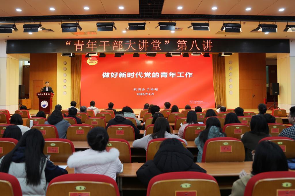 为深入学习贯彻习近平总书记关于青年工作的重要思想,落实党管青年工作原则,助力青年干部准确把握新时代党的青年工作的战略定位与实践要求,切实提升履职能力,更好引领、组织、服务青年,大力培育有理想、敢担当、能吃苦、肯奋斗的新时代好青年,4月7日下午,学校举办“青年干部大讲堂”第八讲,团委书记于培超受邀作专题辅导。