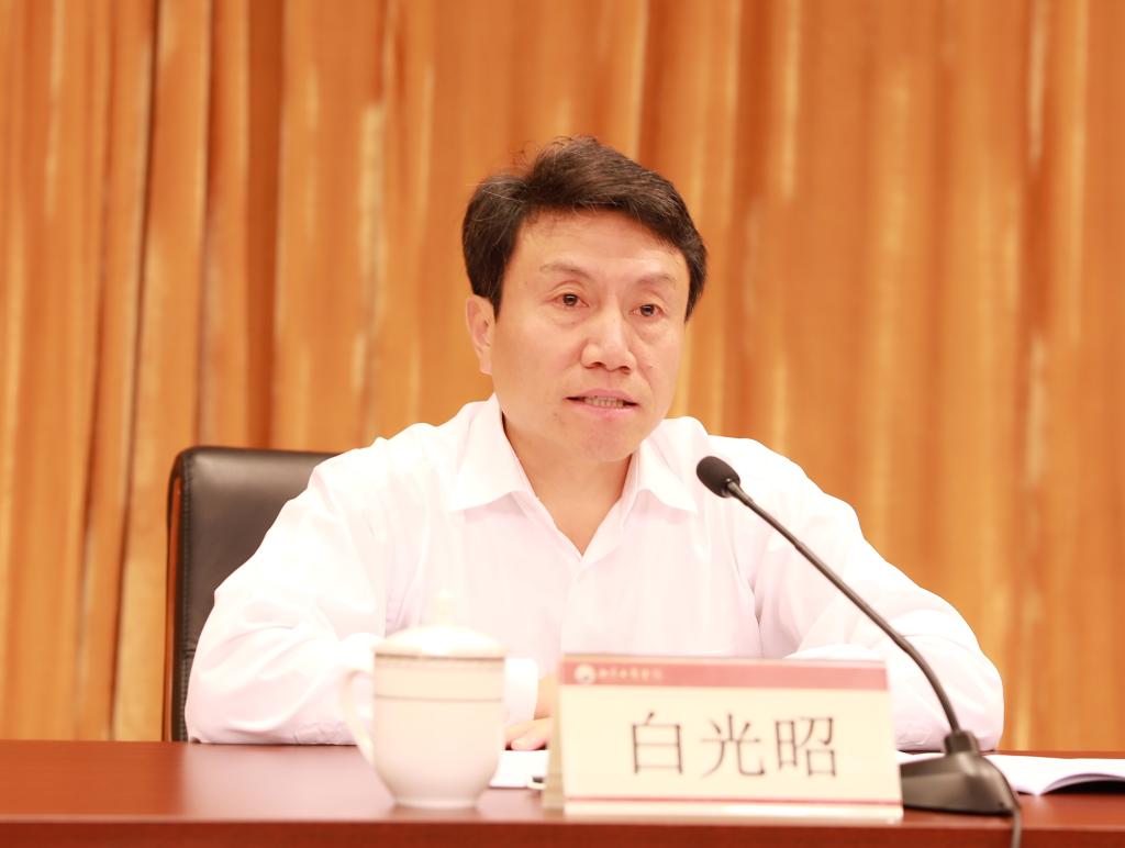 白光昭紧密结合习近平总书记在全国组织工作会议上的讲话、《关于进一步激励广大干部新时代新担当新作为的意见》《关于适应新时代要求大力发现培养选拔优秀年轻干部的意见》以及习近平总书记在中央政治局第六次集体学习时的讲话精神,号召全校各级党组织群英荟萃创新业,并就新时代学校党建工作、组织工作、干部队伍建设等提出明确要求和部署。