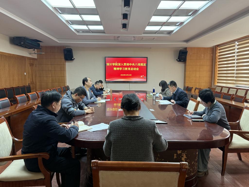会议指出,党中央决定自2025年全国两会后至7月在全党开展深入贯彻中央八项规定精神学习教育,习近平总书记高度重视、亲自谋划并作出重要指示,为开展学习教育指明了方向。统计学院要深入学习领会、认真贯彻落实习近平总书记重要讲话和重要指示批示精神,提高政治站位,切实增强贯彻落实学习教育的思想自觉政治自觉行动自觉,把思想和行动统一到党中央重大决策部署上来。