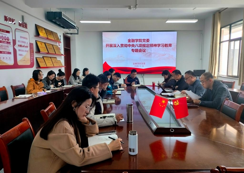 3月24日,金融学院在二教201会议室召开深入贯彻中央八项规定精神学习教育专题会议,举行学习教育启动仪式。会议由党委书记岳松森主持,学院班子成员、党支部书记和全体辅导员参加。