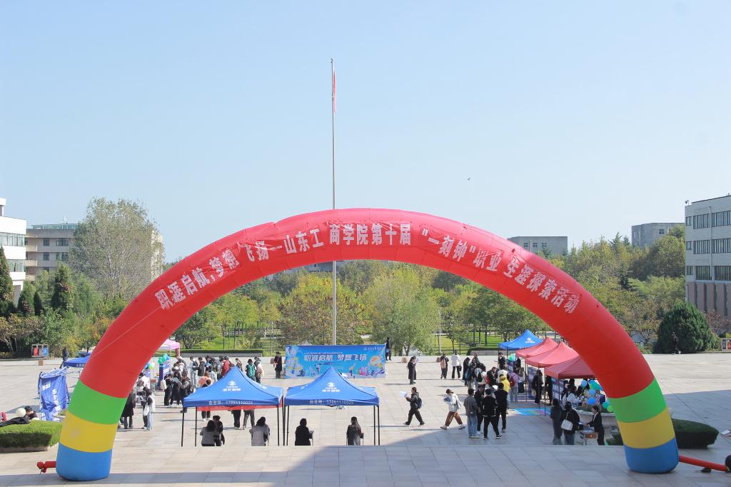 10月23日,山东工商学院第十届“一刻钟”职业生涯探索活动在东校区四教广场举行。学校党委委员、副院长贾海宁到现场调研指导。