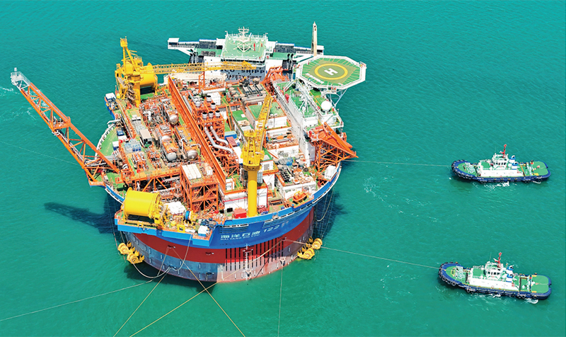 “海葵一号”,是亚洲首艘圆筒型浮式生产储卸油装置。该装置集原油生产、存储、外输等功能于一体,被网友们昵称为“超级能源碗”,也是完全由我国自主设计建造的海上油气加工厂。图为2024年5月12日,“海葵一号”从中国海油青岛国际化高端装备制造基地离港启运。人民图片张进刚/摄