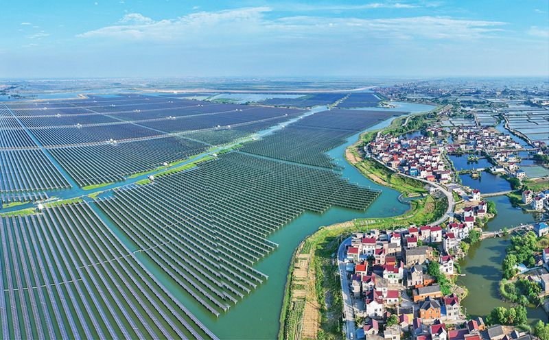 图为2024年5月20日,安徽省马鞍山市当涂县大陇镇的双潭湖渔光互补光伏电站。人民图片李成林/摄