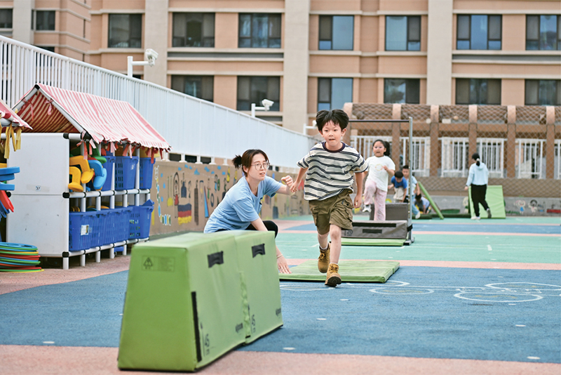 近年来,河北雄安新区通过创新教育发展体制机制、高标准配建教育设施、引入专业教师队伍、引进优质教育资源等方式,不断推动教育高质量发展。图为2024年5月23日,当地幼儿园的孩子们在室外活动。新华社记者牟宇/摄